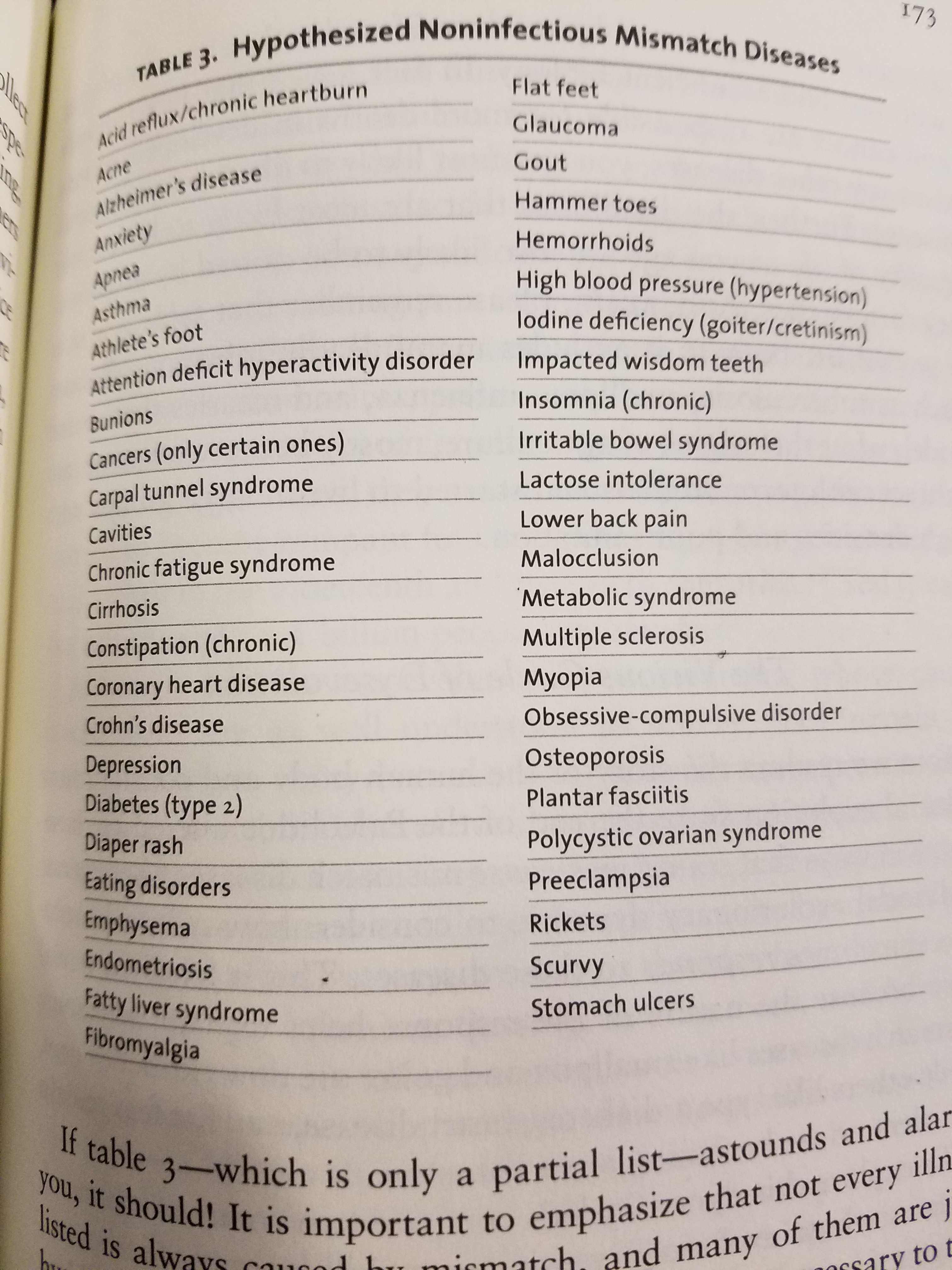 Above is table 3 from Lieberman (2013: 173). He notes hypothesized noninfectious mismatch diseases. Notice how most—if not close to all—are completely preventable with the right environmental interventions.