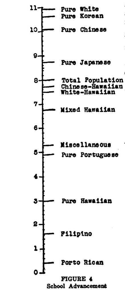 They also discussed the Thorndike Examination of High School Graduates in Hawaii from 1922-1923, that the Chinese and Japanese scored below whites but this could be seen as them not having full English proficiency. Chun (1940: 35) showed that “Anglo Saxons” has Binet IQs of 100, and IQs of 87 and 85 for the Chinese and Japanese respectively, and this is similar to what Porteus and Babcock (1926) showed for Chinese and Japanese too. This also could be due to low English proficiency. Chun (1940) also shows that there were a large amount of schools for the Chinese as well. Coupled with the fact that immigrants aren’t a random sample of the population from which they derive, selection therefore explains these values. It’s quite clear that the Chinese had good education since the 1880s with the introduction of Chinese schools on the mainland and in Hawaii, and along with the fact that Japanese immigrants had education on par with whites at the time, of course the selectivity of the population along with the education they got clearly mattered.